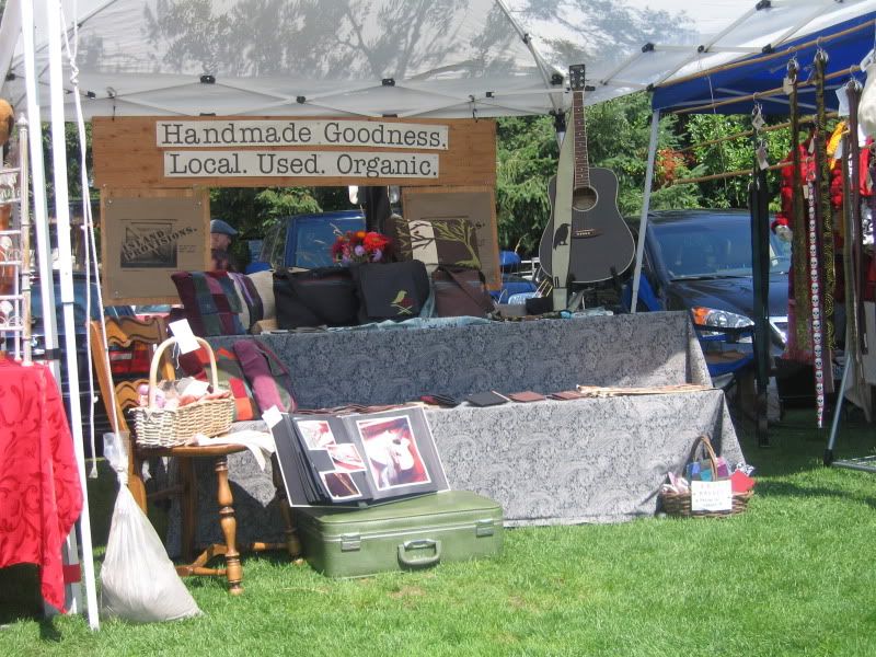 Hello all. This has been a very busy summer for yours truly. I have been spending most of my time trying to get an organic farm started and that has not left much time for sewing. I did however spend many hours next to my sewing machine last week trying to prepare for a Wine Festival that took place yesterday in Bainbridge Island, Washington. The show was a success and I loved talking with local artists and community members. My favorite part about shows like these is that I get to meet the people who purchase my goods face to face. These days, most of my sales are through that wonderful little handmade website, Etsy. While I am extremely grateful to Etsy and consider it the next best thing to a fair, the market or a festival it's a whole different ball game when I get to meet customers face to face. Some very sweet people came by and bought gifts for loved ones, many people came by and talked about their own sewing adventures, I even met one person who went to camp as a youngster on the little island I now live on, small world! My favorite times during fairs are when people stop by to talk about guitar straps and music. There is a wide diversity of folks who are interested in the guitar straps; kids buying for parents, parents buying for kids, novices buying their first straps, professionals looking for the perfect strap for their collection of guitars, and all of them musicians or connected in some way to the eccentric musician in all of us. I love hearing about their music and why they are pursuing song writing and other avenues of music. It makes me feel really special to know that my guitar straps will accompany them on their journey. I also had some great conversations about the hand-spun yarn I am starting to make (look for it soon on Etsy). So, thanks to all who stopped by and chatted yesterday as well those who made some purchases. I had a lot of fun and enjoyed to getting to know everyone. I'll be back for the Indie Banditas event in November. Oh and by the way, if you would like to learn about the farm I am trying to get going, please check out its blog: tubbergren.blogspot.com, thanks!